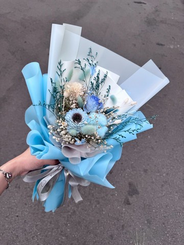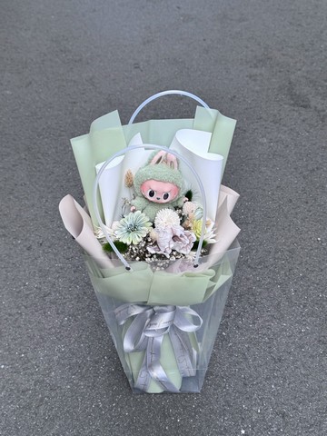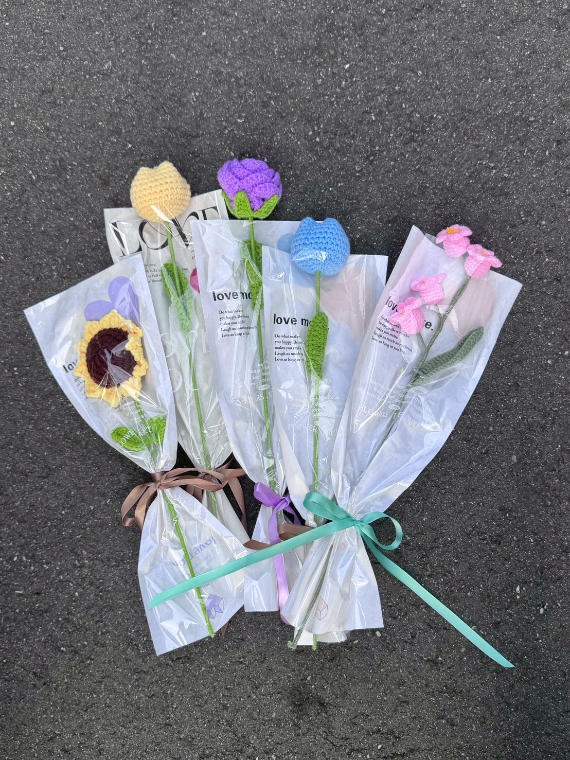 以質感毛線手工鉤織而成的單支花朵,搭配純白+透明霧感包裝,營造出清新優雅的氣息。