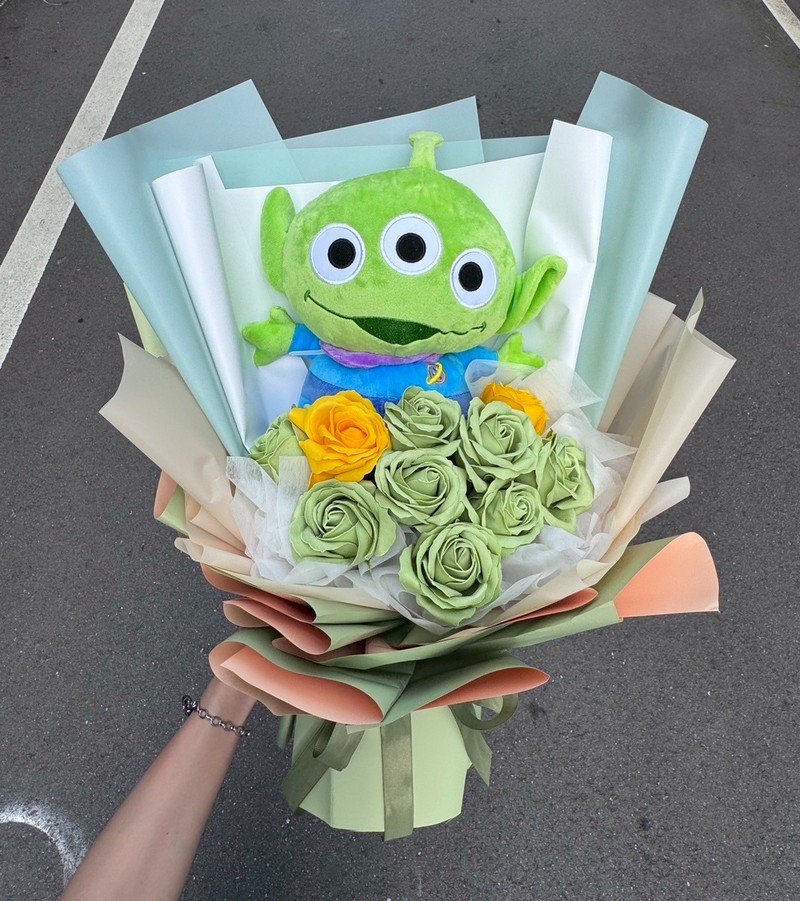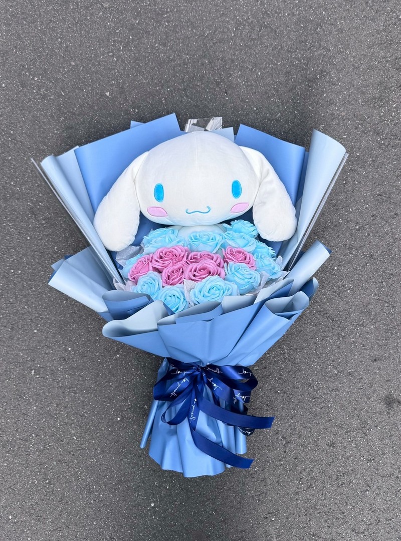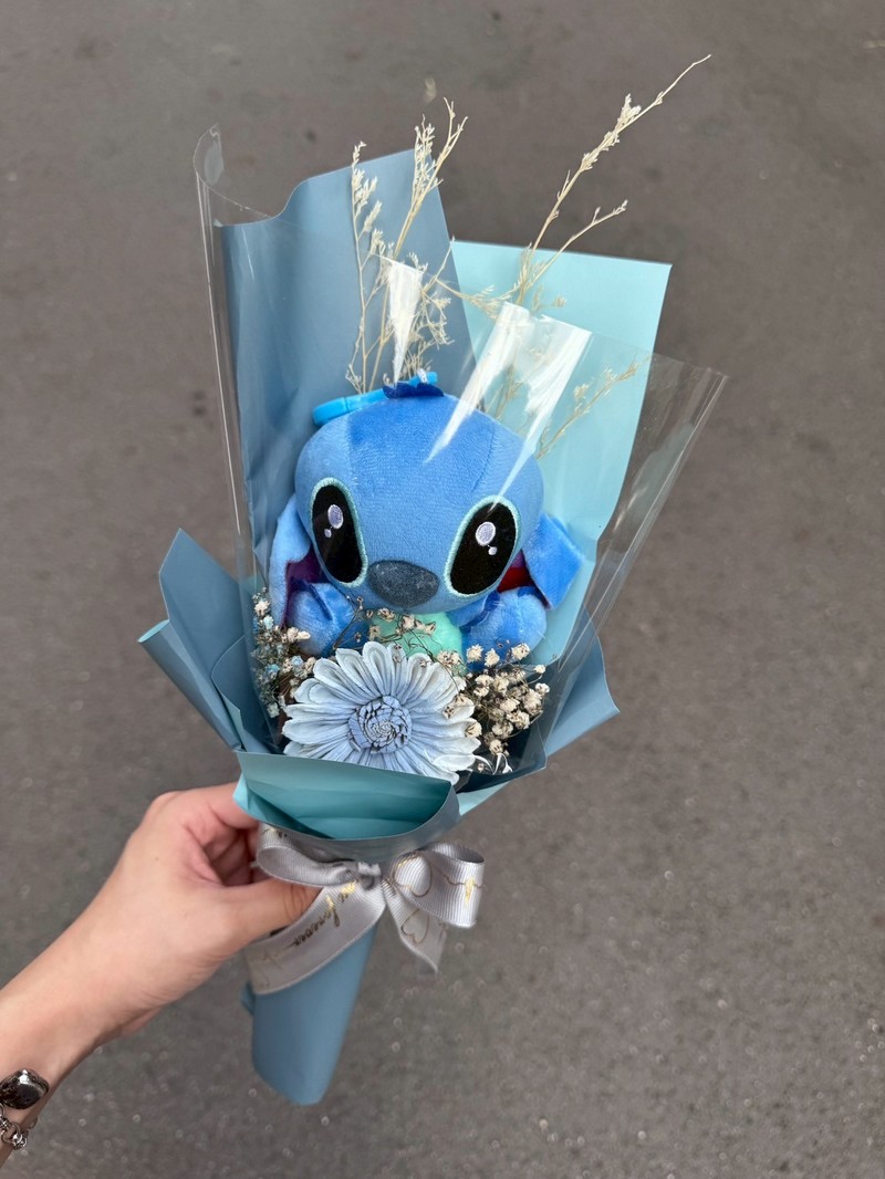 夢幻藍色系史迪奇金莎花束:甜蜜童話風