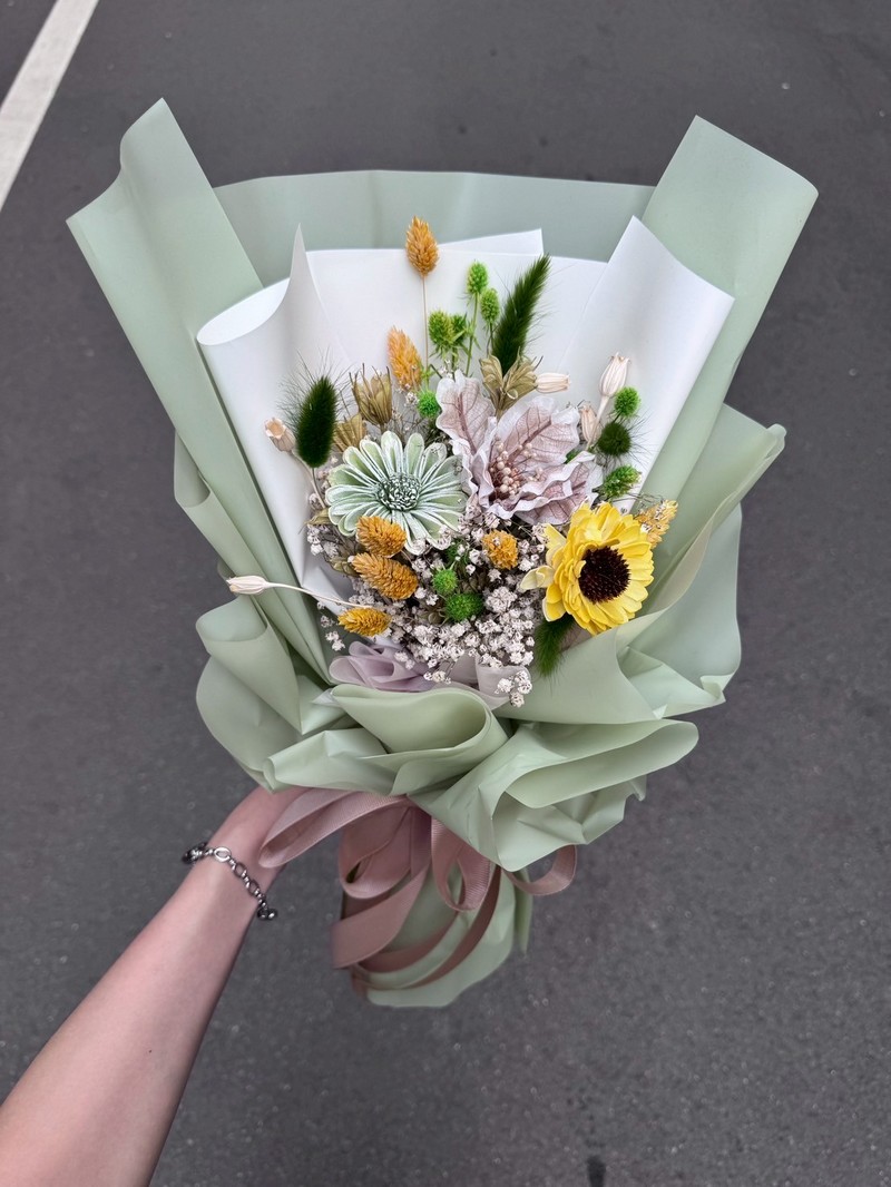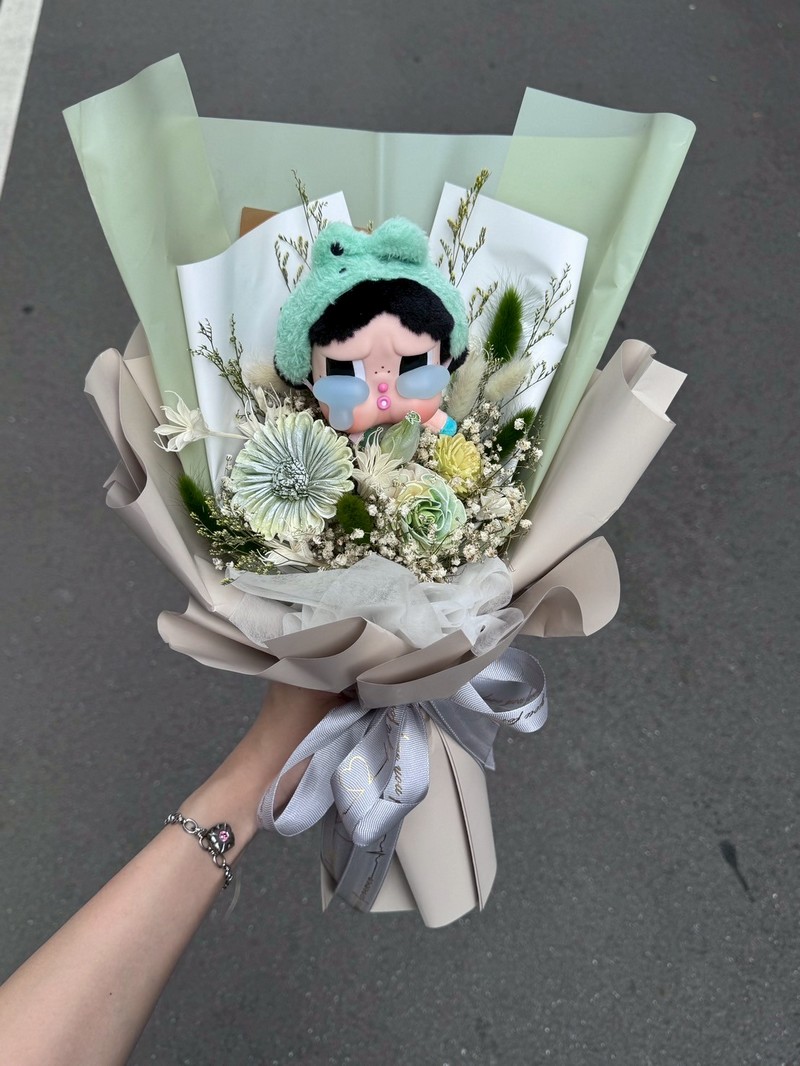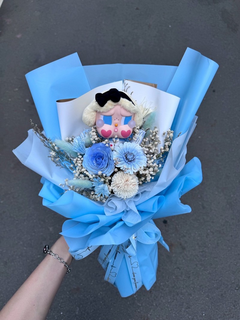 藍色系夢幻乾燥花束 + Labubu娃娃