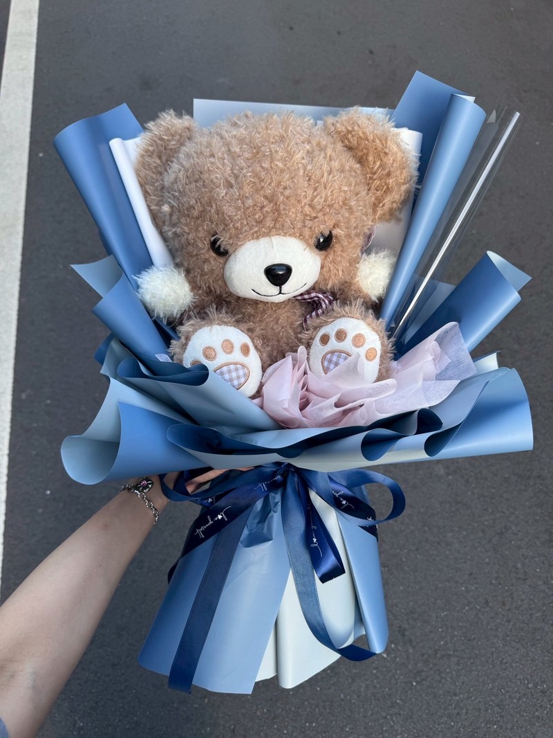 藍色畢業花束|金沙巧克力 x 畢業小熊 x 粉系包裝|甜甜送禮首選