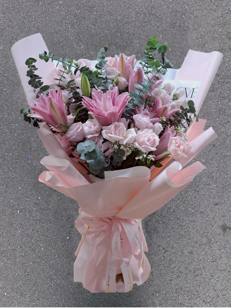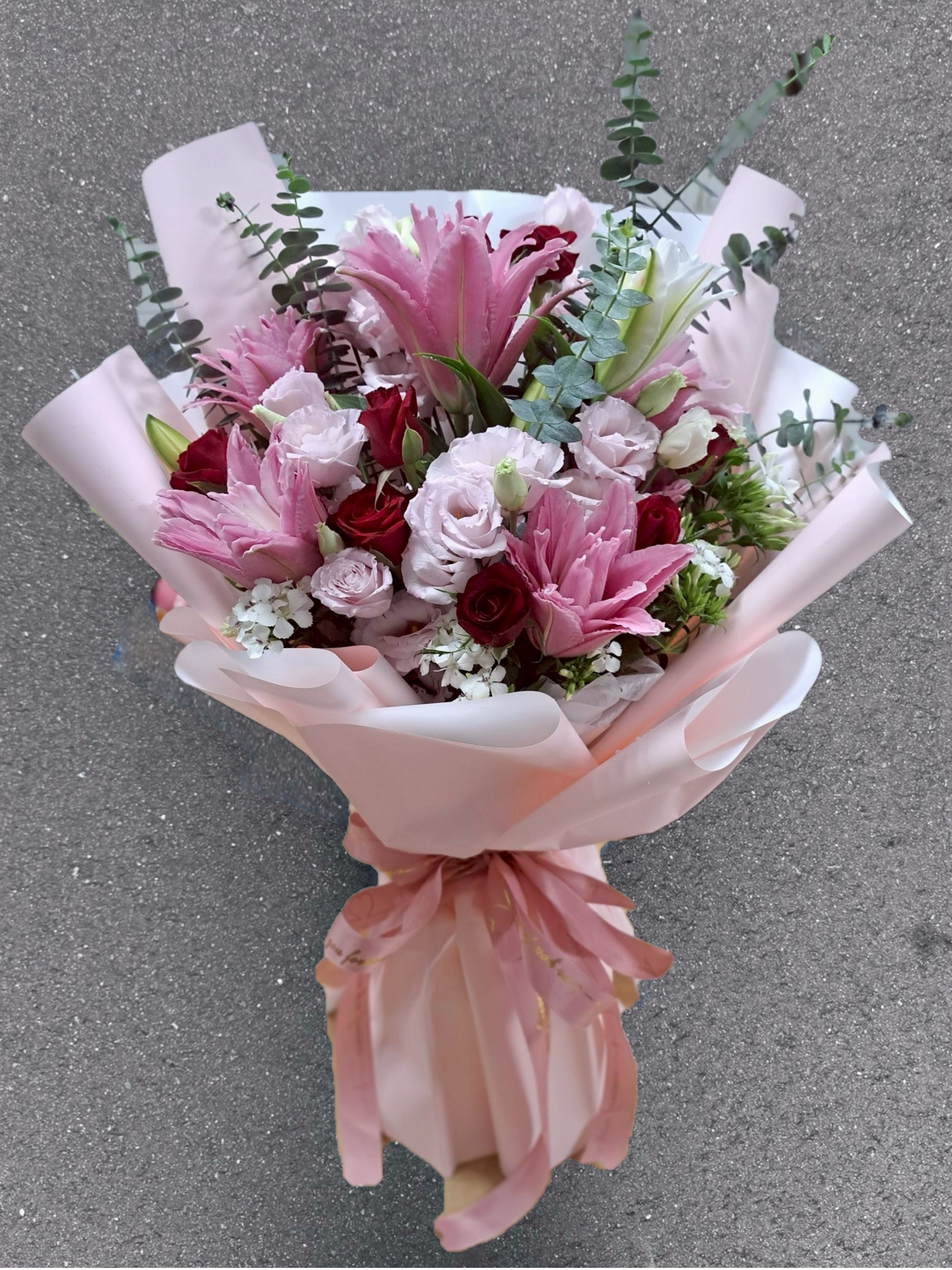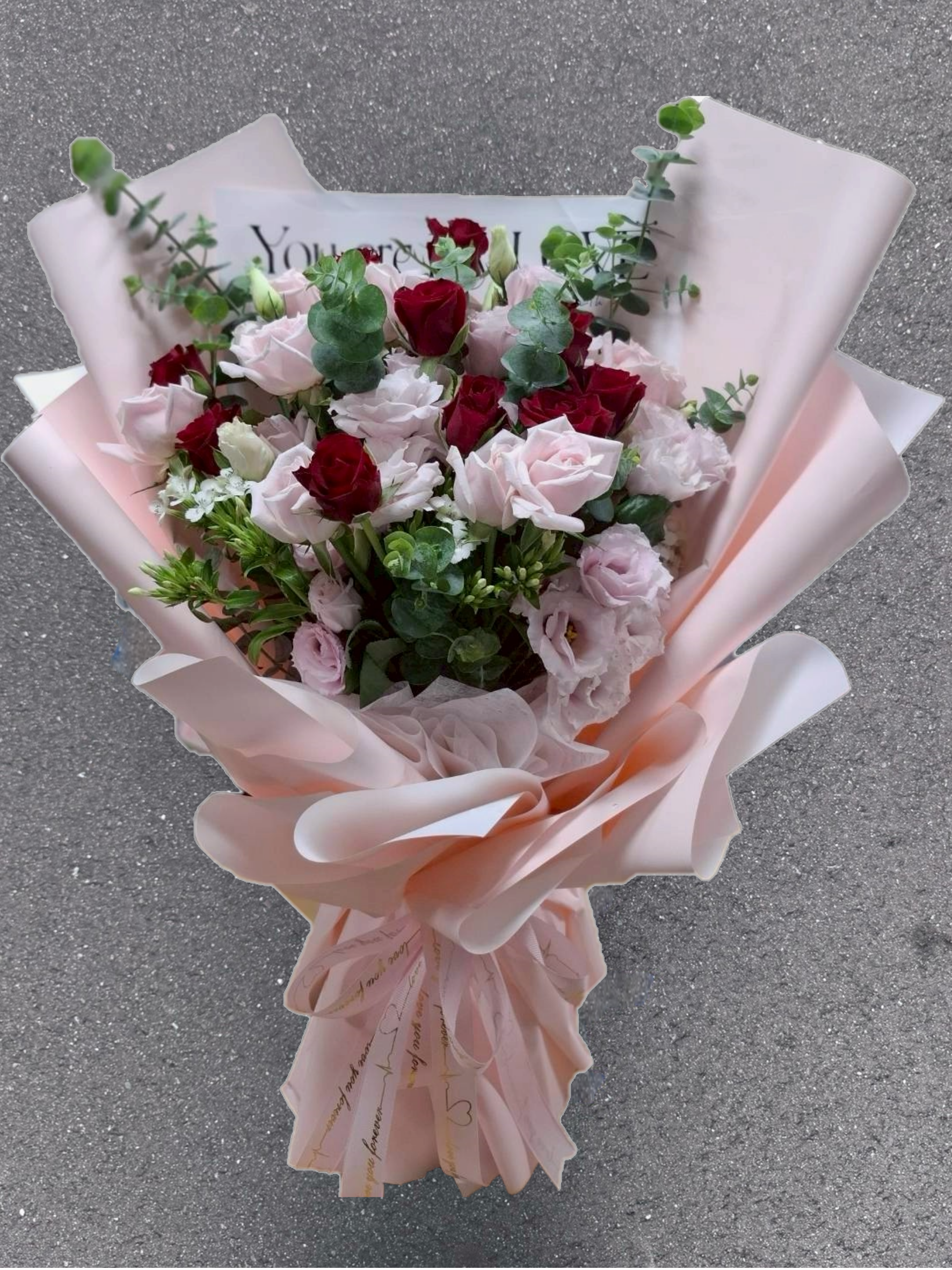 經典紅 × 柔粉白鮮花花束|浪漫韓式包裝